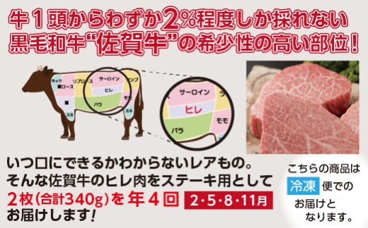 - 【定期便4回】佐賀牛 ヒレステーキ 340g×4回発送 全4回 定期便 | 黒毛和牛 牛肉 国産 2月 5月 8月 11月発送 年4回 _l-5