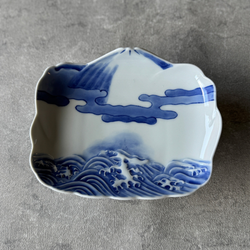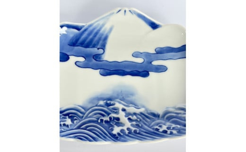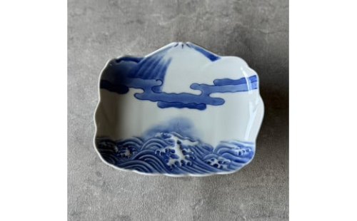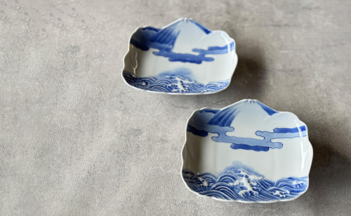 有田焼 染付霊峰富士に波濤文 小向付 2枚セット【有田焼 花伝作】食器 器 うつわ 皿 和皿 小皿 取皿 2枚 セット 富士山 富士 縁起物 染付 青 手描き 電子レンジ対応 A35-350