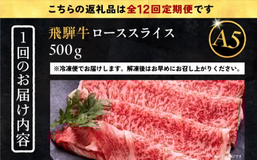 【12回定期便】 牛肉 飛騨牛 ローススライス A5ランク 1パック (500g) しゃぶしゃぶ・すき焼き 和牛 国産 霜降り 肉 にく 牛肉 国産 和牛 高級肉 産地直送 贈答用 ギフト ブランド牛 岐阜県 希少部位 岐阜県産 人気 お取り寄せ / 恵那市 / 岩島屋 [AUAJ038]