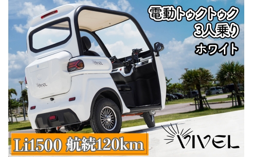 《電動トゥクトゥク》VIVEL (EV TRIKE) 3人乗り Li1500 ホワイト 航続120km|ビベルトライク 電気トライク EVトゥクトゥク 電動乗り物 電動自動車 電気バイク [0548]