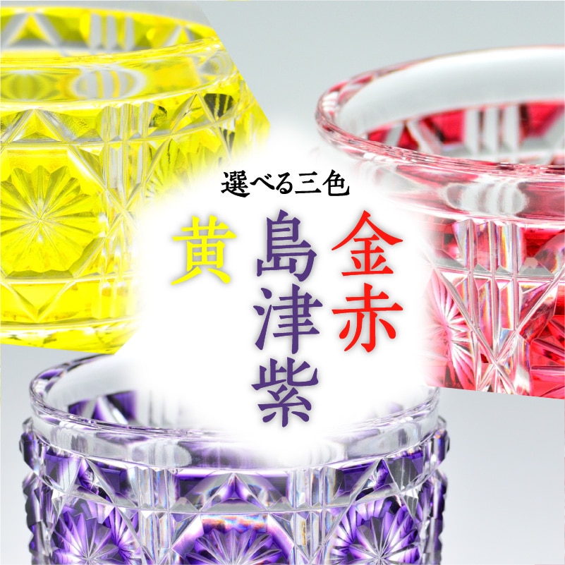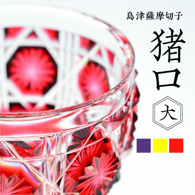 - 島津薩摩切子 猪口(大) cut18 金赤 K010-003-2