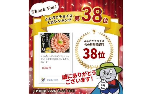 - えりも【マルデン特製】(ワンフローズン) 北海道 日高産 ぶり 半身 1.2kg~1.4kg【er002-077-b】