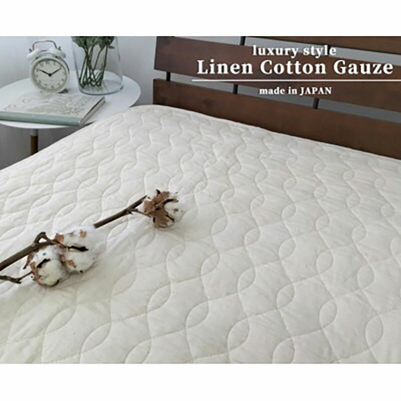 【ふるさと納税】敷きパッド ダブル 140×205 アイボリー リネン コットン ガーゼ 敷パッド ベッド パッド マット ベッドパッド シーツ 日本製 寝具 大阪府 岸和田市 お届け:お申し込み後、3週間程度で順次発送予定