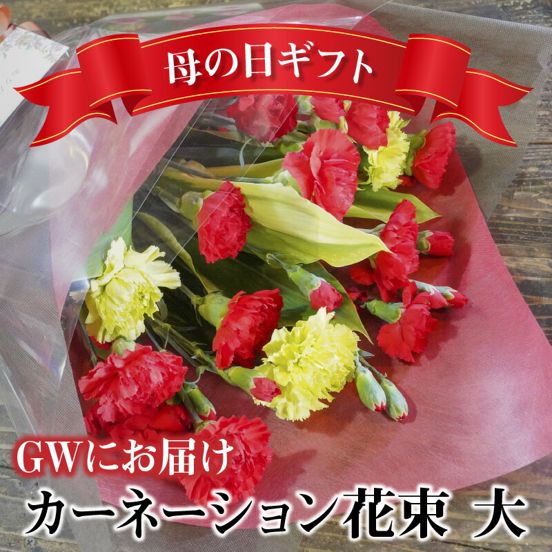 - 【ふるさと納税】母の日 明るい印象 赤 グリーン カーネーション 花束 サイズ大 ギフト 生花 プレゼント用 贈り物 里帰り 手土産 送料無料
