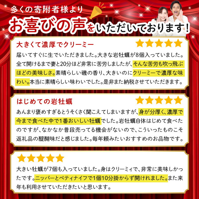 【ふるさと納税】【着日指定】 2026年4月発送 事前受付 天然 岩牡蠣 プリプリ 生食用 選べる サイズ × 内容量 小 〜 大 3kg 〜 10kg 延岡産 生牡蠣 濃厚 牡蠣 殻付き 海鮮 国産 産地直送 海のミルク ジューシー 極濃厚 クリーミー 栄養豊富 冷蔵 宮崎県 延岡市 送料無料