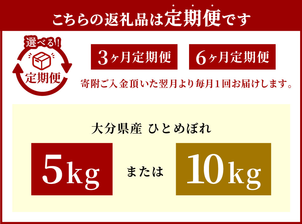 【ふるさと納税】【選べる定期便】ひとめぼれ 5kg/10kg 3ヶ月定期便(合計15kg~30kg) または 6ヶ月(合計30kg~60kg) 選べる容量 大分県産 精米 米 国産 九州産 送料無料【2025年10月下旬発送開始】