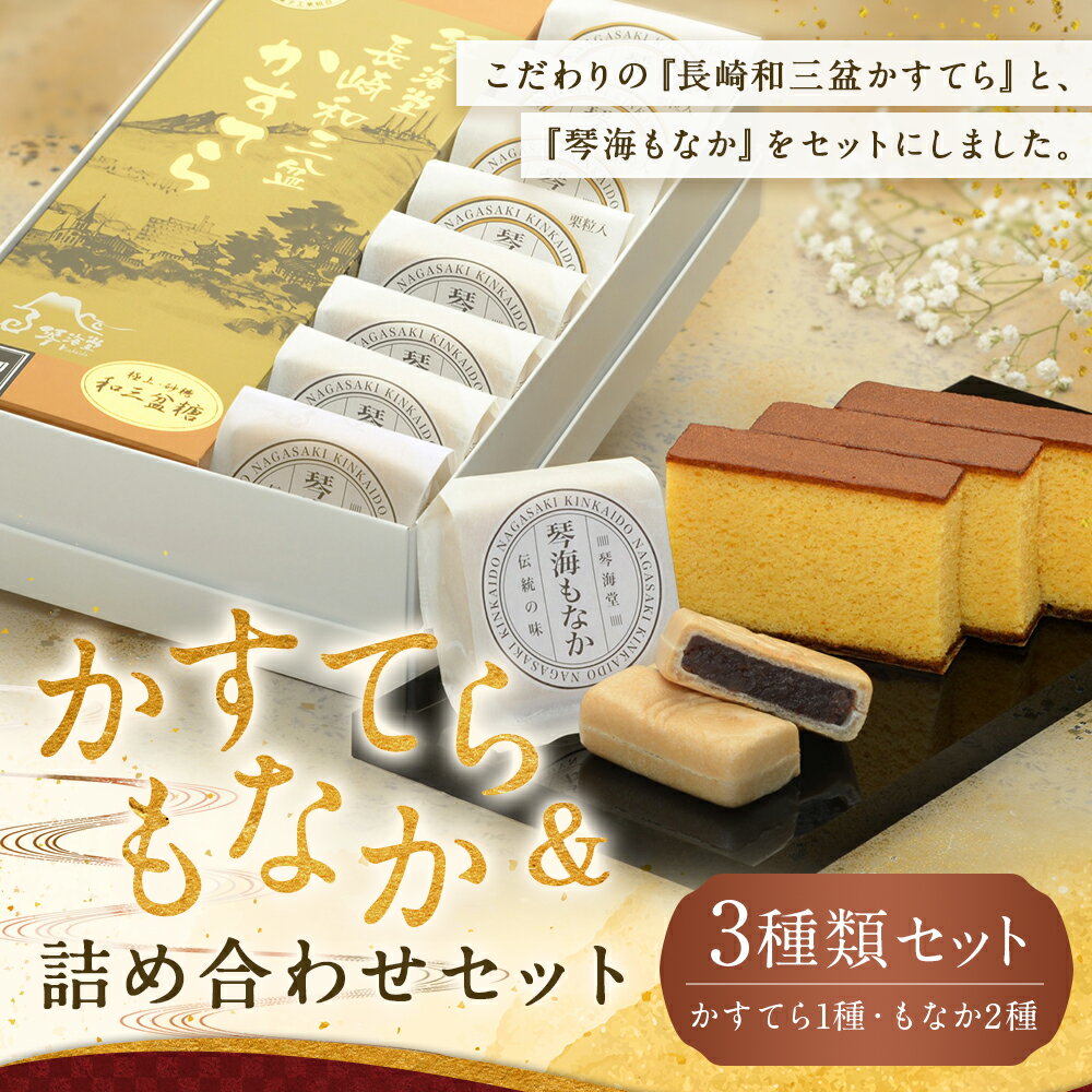 【ふるさと納税】 【7営業日以内発送】【詰め合わせセット】 長崎和三盆かすてら1号&長崎銘菓の琴海もなか2種 各4個 カステラ カット済み モナカ おやつ 菓子