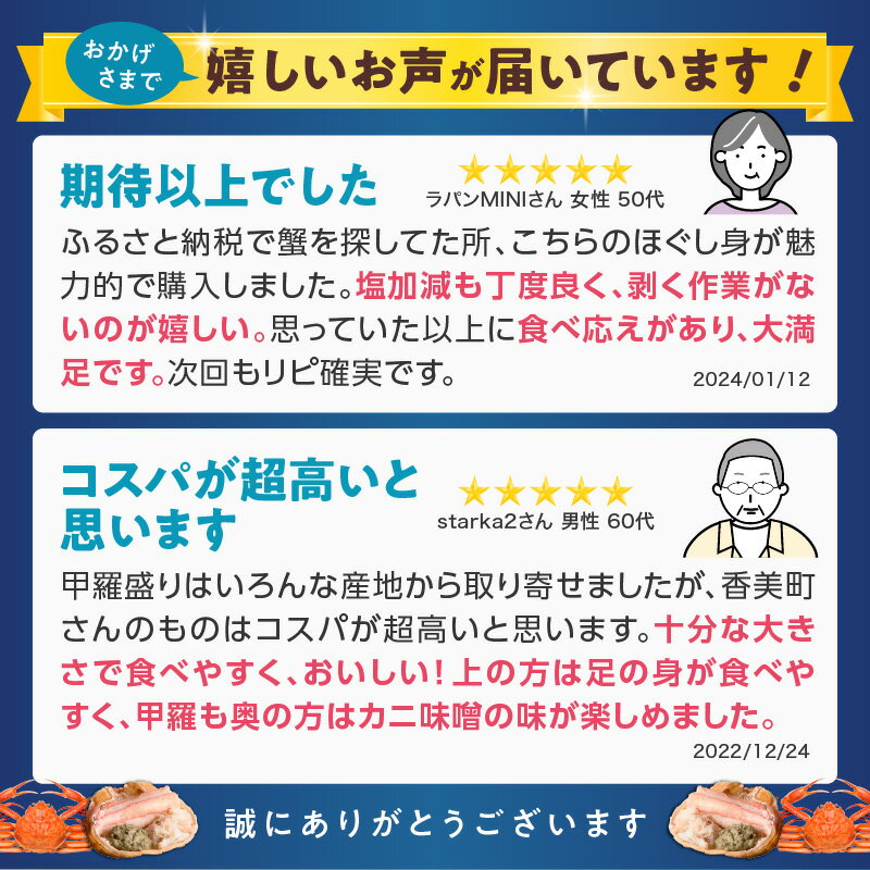 【香住ガニ 甲羅盛り 約160g×2個(甲羅重量除く カニ酢付き)合計320g 冷凍】発送目安:入金確認後約1ヵ月程度 配送日指定不可 カニの本場 香住 むき身 たっぷり丸々1杯分 食べやすい 甘みが強い 大人気 ふるさと納税 濃厚 関西唯一の水揚げ 香美町 カニ かに 蟹 紅ガニ ベニズワイガニ 蒸し スチーム 足 爪 身 脚 ほぐし 絶妙の塩加減 モリタ食品 11000円 10-18