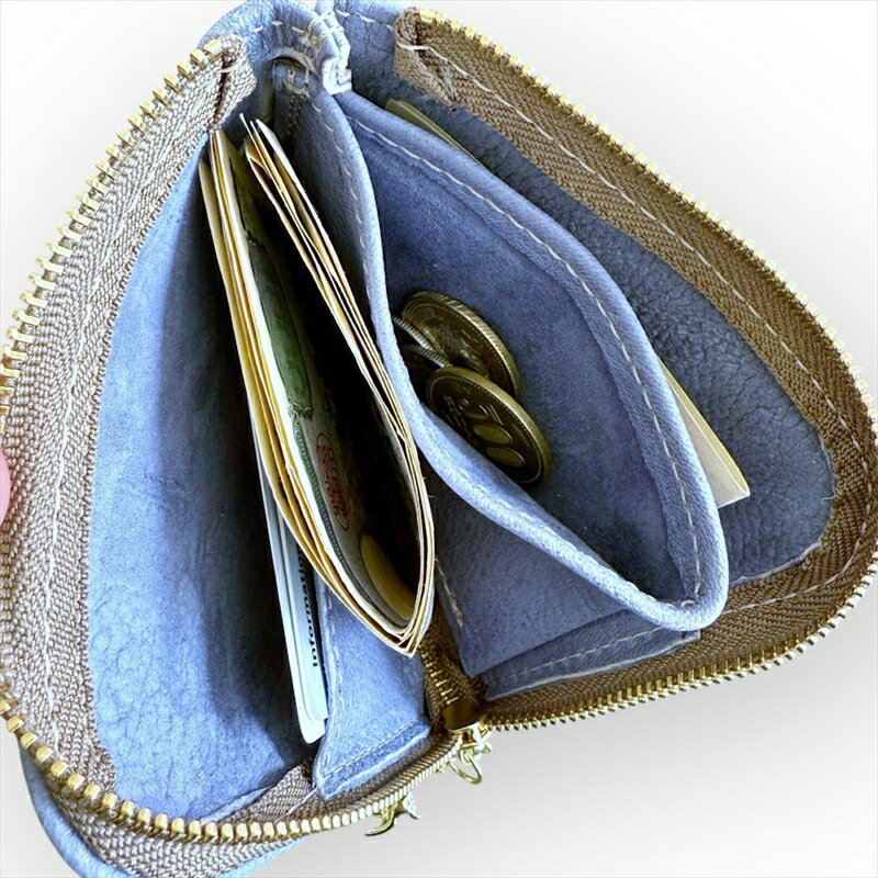 - 【ふるさと納税】鹿革L字財布ミニ ブルーグレー【 財布 神奈川県 小田原市 】