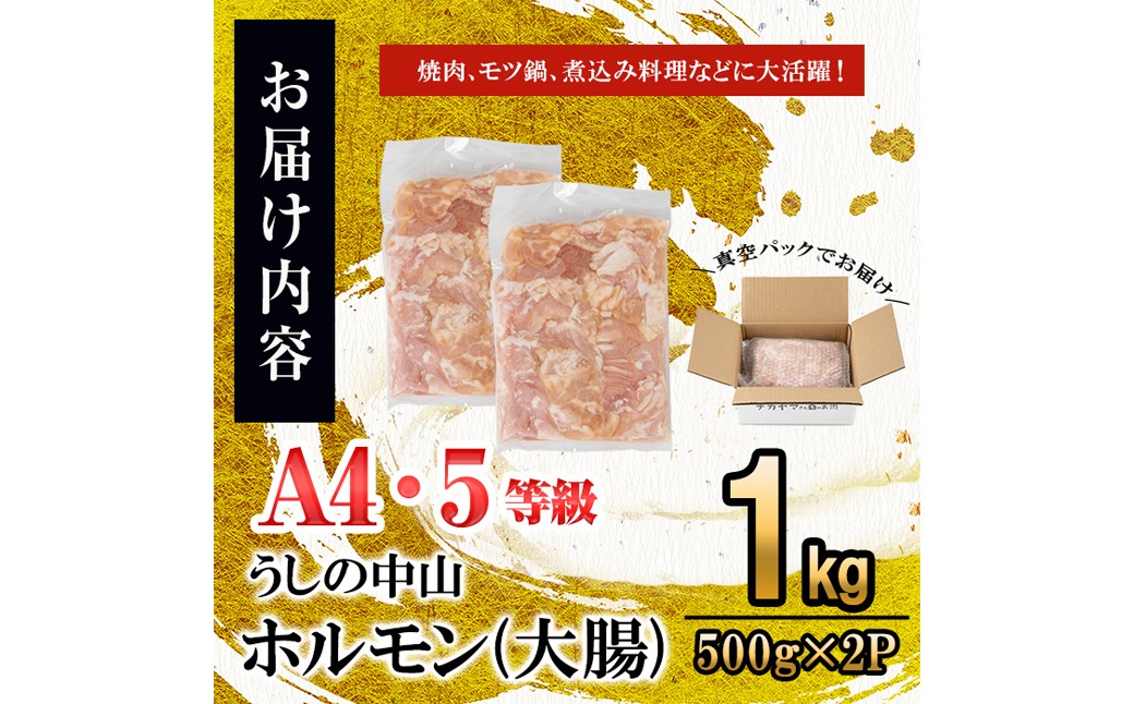 うしの中山 A4・A5等級黒毛和牛 ホルモン(大腸) 計1kg(500g×2袋)a5-347