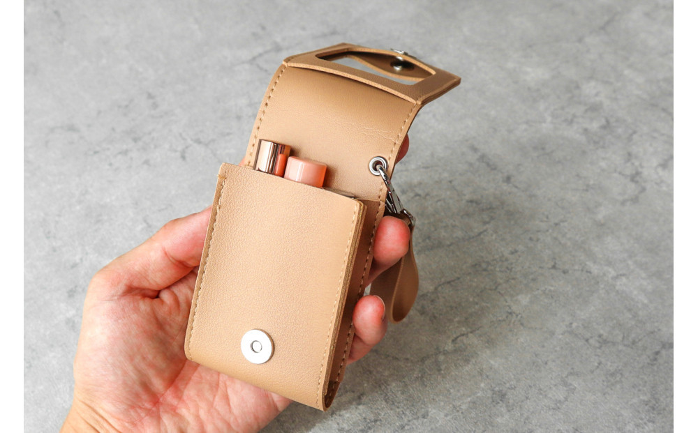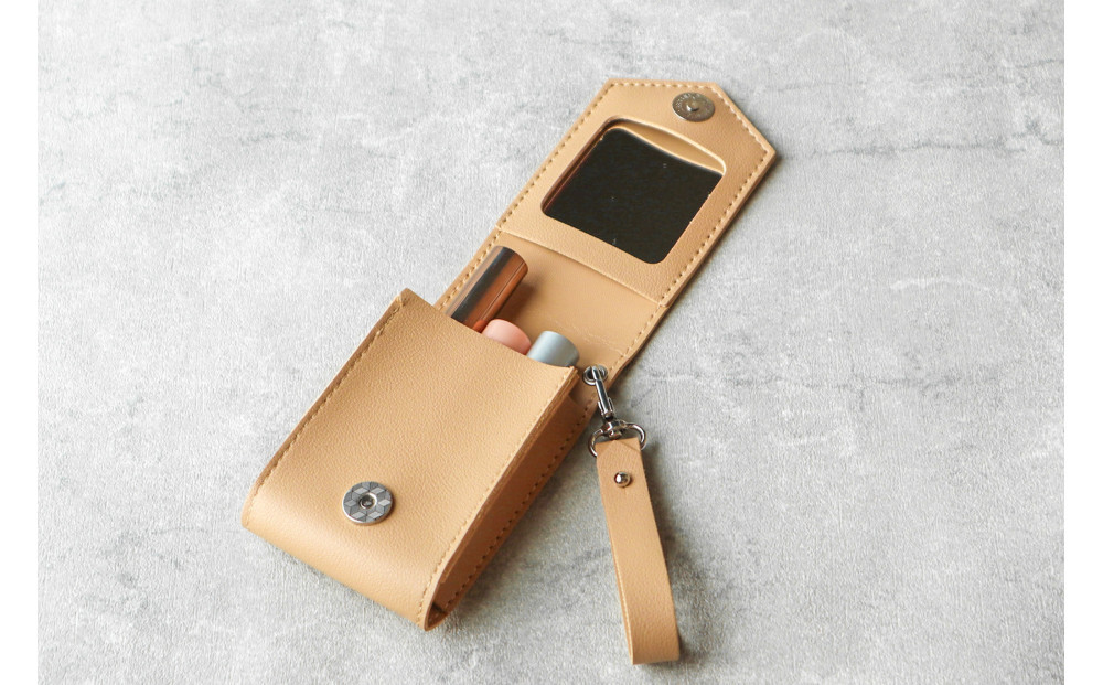 - 【ベージュ】毎日の“ときめき”を仕込めるリップケース リップクリームホルダー キーホルダーストラップ【ミラー付き・3本入る】 232238_CM032VC03