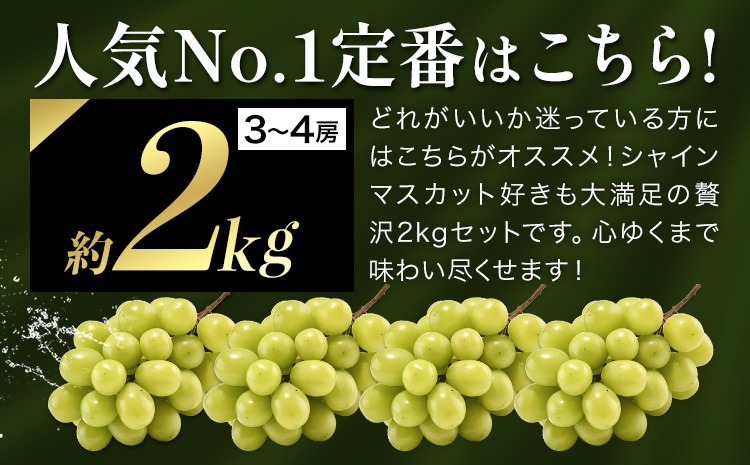 - 【2026年出荷先行予約】 厳選 シャインマスカット 約2kg 3~4房 お届け フルーツ 果物 岡山県産 秋旬 数量 限定 2房 シャイン マスカット 大粒から小粒まで不揃い 《2026年9月上旬-11月中旬頃に出荷予定(土日祝除く)》 ---ofn_cwsmx_ae911_26_19000_2---