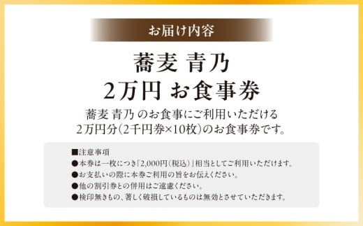 蕎麦 青乃 2万円お食事券