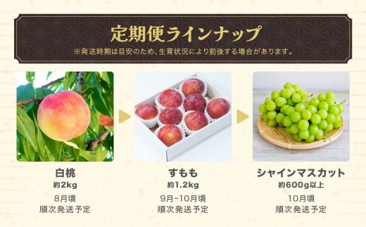 - 【先行予約】フルーツ定期便 全3回 白桃 すもも シャインマスカット 秀品 2026年8月上旬頃~発送開始 2026年産 令和8年産 佐竹物産 ※沖縄・離島への配送不可 sb-fthps3-b