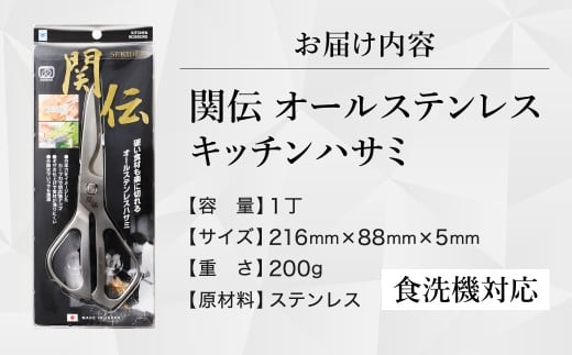 キッチンハサミ 鍛造オールステンレス 関伝 〜 食洗機対応 万能 多機能 キッチンバサミ ステンレス製 一体型 分解 洗浄可能 ハンドル ギザ刃 カーブ刃 えぐり刃 ストレート刃 滑らない 厚刃構造 錆びにくい 切れ味長持ち ハサミだけで料理を時短 分解してしっかり洗える