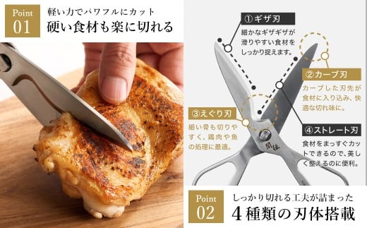 - キッチンハサミ 鍛造オールステンレス 関伝 〜 食洗機対応 万能 多機能 キッチンバサミ ステンレス製 一体型 分解 洗浄可能 ハンドル ギザ刃 カーブ刃 えぐり刃 ストレート刃 滑らない 厚刃構造 錆びにくい 切れ味長持ち ハサミだけで料理を時短 分解してしっかり洗える