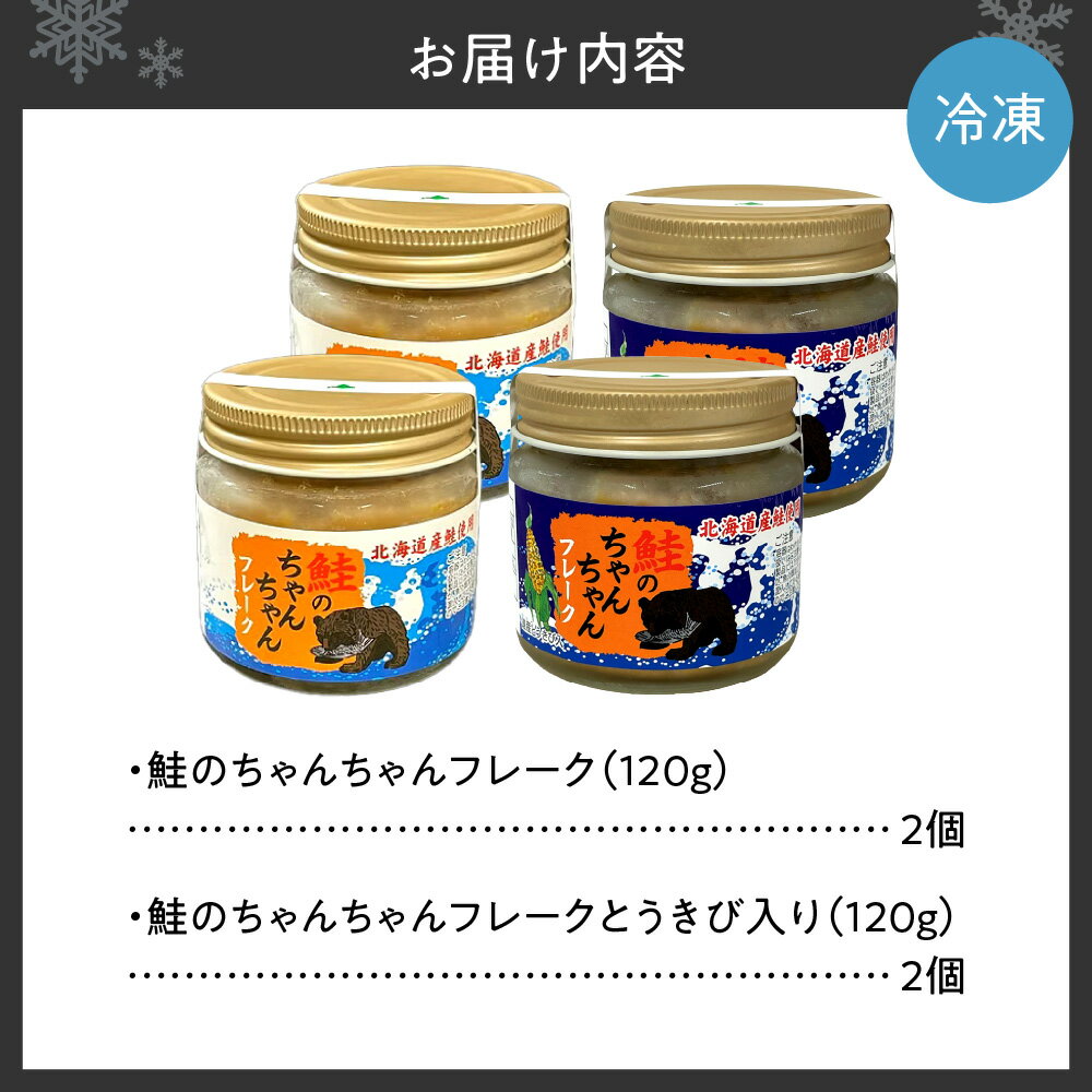 【ふるさと納税】 鮭 ちゃんちゃん フレーク 2種 120g 各2個 計4個 セット 北海道産 鮭フレーク しゃけ とうきび入り 味噌 大豆 とうもろこし 郷土料理 ちゃんちゃん焼き ご飯のお供 アレンジ トッピング 食べ比べ 冷凍 ギフト 贈答 北海道 札幌市