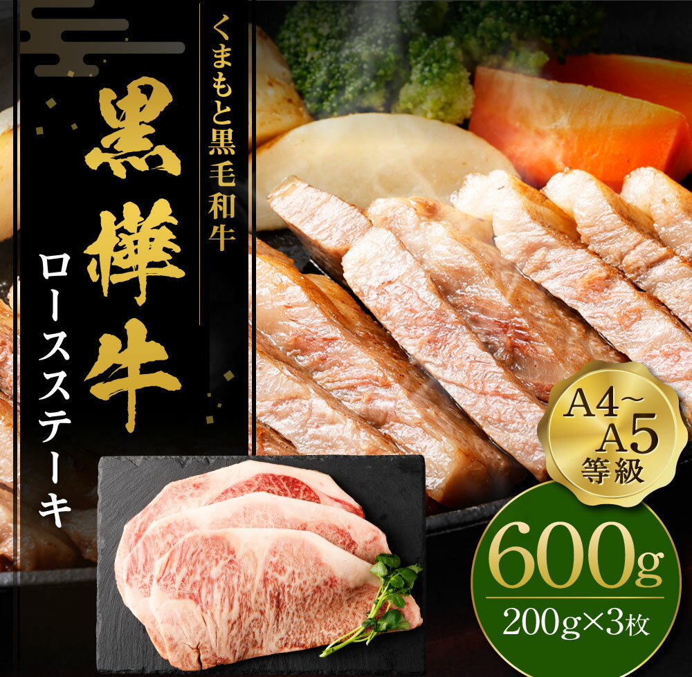 【ふるさと納税】くまもと黒毛和牛 黒樺牛 A4〜A5等級 ロースステーキ 200g×3枚 合計600g 牛肉 牛 ステーキ 和牛 お肉 黒毛和牛 国産 九州産 熊本県産 冷凍 送料無料