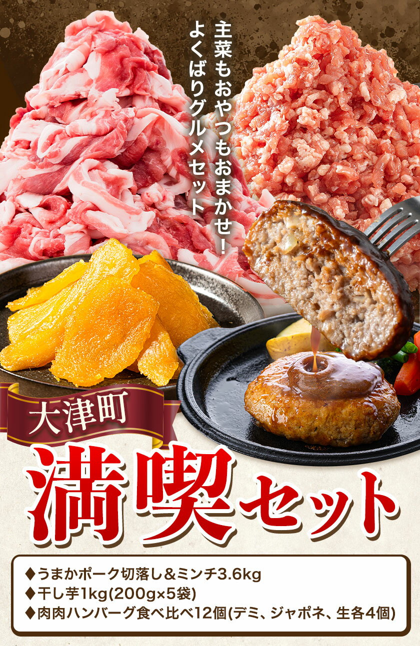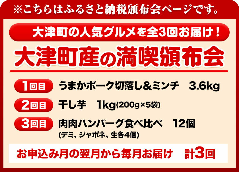 【ふるさと納税】大津町 満喫頒布会 全3回 定期便 うまかポーク 切り落とし ミンチ 干し芋 肉肉 ハンバーグ《お申込み月の翌月から発送開始》熊本県 大津町 豚肉 ミンチ 干し芋 ハンバーグ 肉 頒布会 全3回