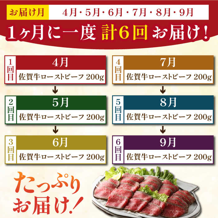 - 【ふるさと納税】【全6回定期便】三栄の佐賀牛ローストビーフ(1〜2人前)200g 【肉の三栄】 霜降り 黒毛和牛 和牛 佐賀牛 ローストビーフ[HAA127]
