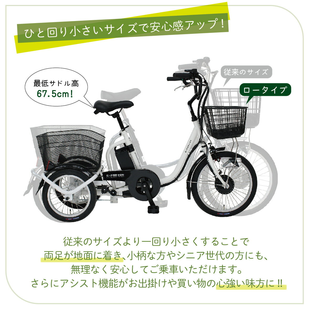 - 【ふるさと納税】イーパートン ロータイプ 電動アシスト 三輪自転車 送料無料 BEPN18-WH(組立なし) CC003