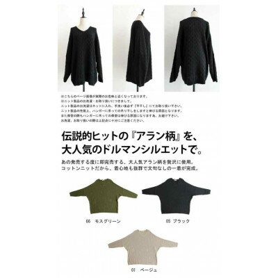 - 【ふるさと納税】【ANTIQUA/アンティカ】アラン柄 ドルマンニット モスグリーン(PN-00310-66-F)【1639377】