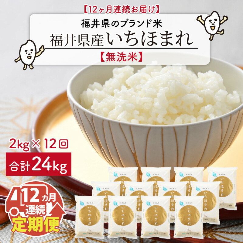 【ふるさと納税】【令和7年産・新米】定期便 ≪12ヶ月連続お届け≫ 福井県のブランド米 いちほまれ 無洗米 2kg × 12回 計24kg 【 無洗米 人気 品種 ブランド米 特A 】