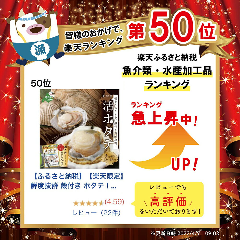 - 【ふるさと納税】高評価★4.83 朝どり 新鮮出荷 殻付き 活ホタテ 特大 3kg前後 (10枚前後) 北海道 野付産 食べ応え抜群( ふるさと納税 ほたて 北海道 ふるさと納税 帆立 ホタテ 帆立 ふるさと納税 活ホタテ 貝柱 春 旬 ふるさと ほたて 北海道 別海町 )
