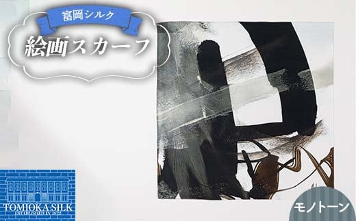 純国産 富岡シルク 絵画スカーフ 《モノトーン(グレー系)》 ファッション小物 ファッションアイテム 服飾品 ファッション F21E-311