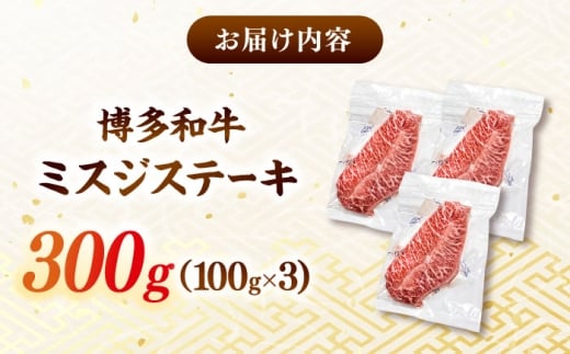 【厳選希少部位】【A4ランク以上】博多和牛 ミスジステーキ 300g(100g×3p) ▼ ステーキ 希少部位 牛 和牛 国産 国産牛 ブランド牛 牛肉 肉 赤身 霜降り みすじ 冷凍 福岡 博多 桂川町/株式会社MEAT PLUS [ADAQ102]