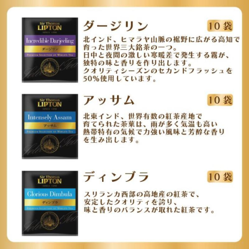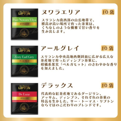 - サー・トーマス・リプトン アソート PP個包装 60袋 × 2セット まとめ買いセット 飲料 紅茶 ティー ダージリン アッサム ディンブラ ヌワラエリヤ アールグレイ デラックス ティーバッグ 飲み比べ