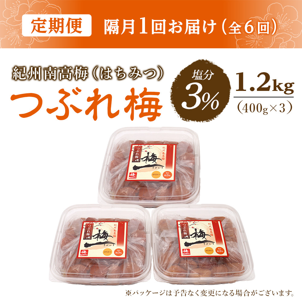 ※好評につき,25年11月以降発送※ 【隔月定期便6回】紀州南高梅《つぶれ梅セット》はちみつ梅 塩分3%(1.2kg)