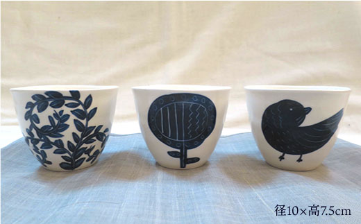 - 【波佐見焼】インディゴブルー フリーカップ 3柄セット【堀江陶器】 [JD42]