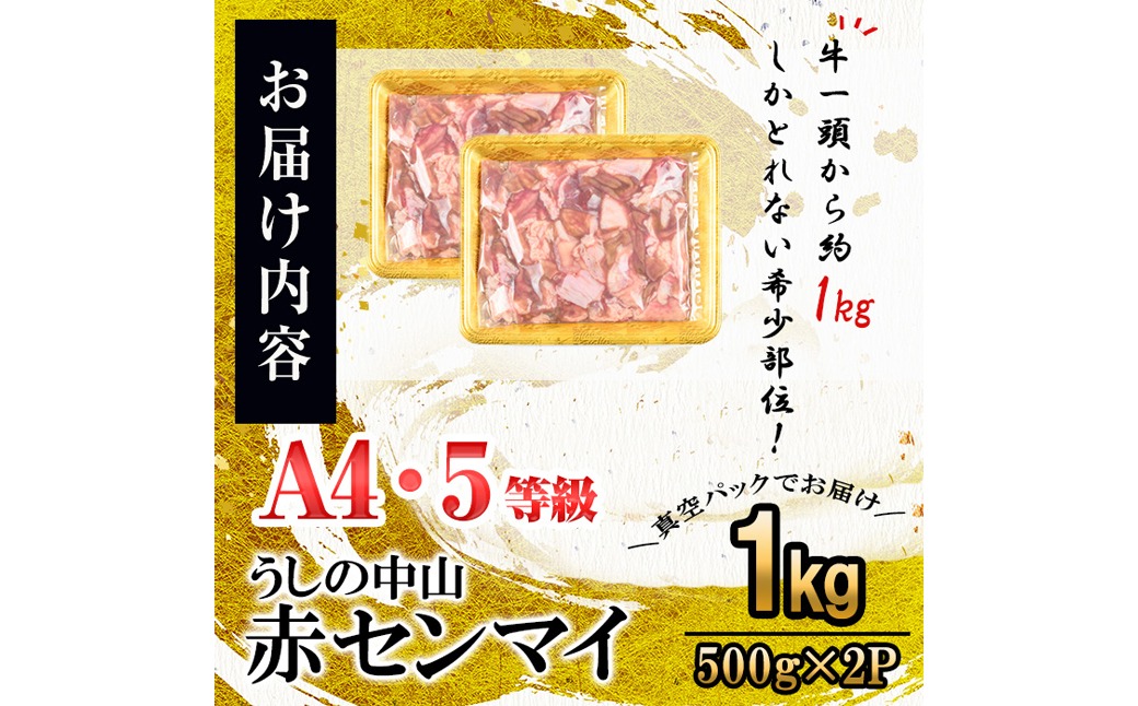 - うしの中山 A4・A5等級黒毛和牛 赤センマイ(ギアラ)計1kg(500g×2P)a5-345