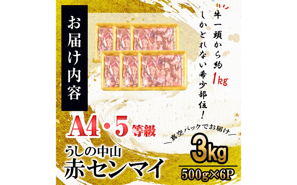 - うしの中山 A4・A5等級黒毛和牛 赤センマイ(ギアラ)計3kg(500g×6P)c0-132
