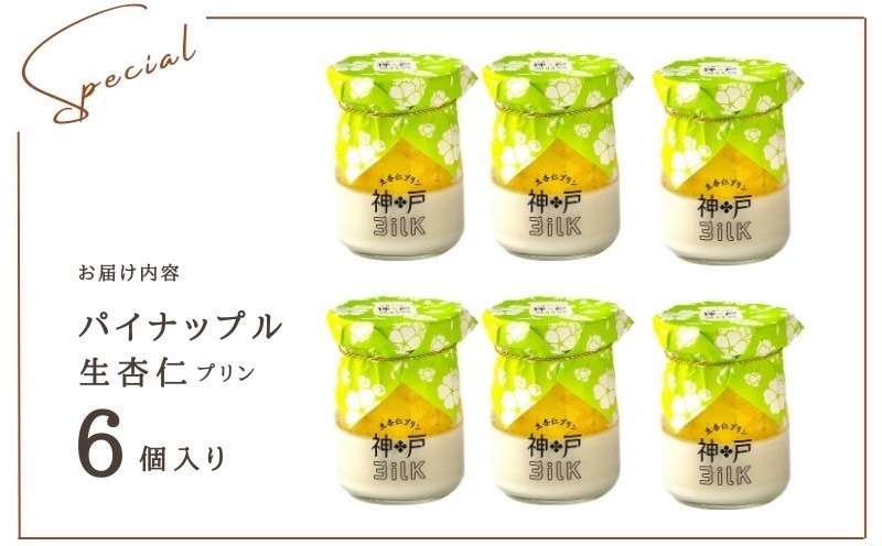 - 099H3922 【神戸milk】パイナップル生杏仁プリン 6個セット【神戸ミルク 手作り 冷蔵 ぷりん スイーツ デザート】