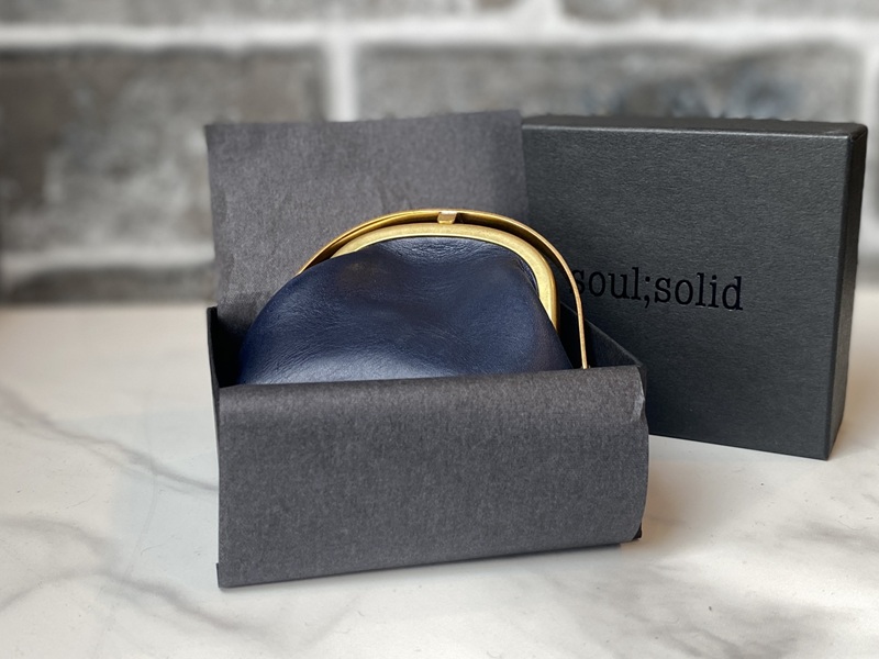【soul;solid】ワンタッチ真鍮がま口ミニポーチ [178S12] soul solid ワンタッチ 真鍮 がま口 ミニポーチ 選べる カラー ナチュラル ブラック ネイビー 革 マチ ハンドメイド ギフト用 エイジング 小銭収納 コンパクト バッグ 高品質 収納力 レザー アンティーク 小物 雑貨 革小物 愛知県 小牧市 送料無料