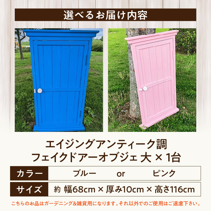 - フェイクドアーのオブジェ 大 色:ブルー、ピンクから選択 [161P20] フェイクドアー オブジェ 選べる カラー ドアー 扉 国産 ガーデン エクステリア ガーデニング オーナメント 手作業 強度 天然木 ナチュラル 庭 ベランダ 屋外 インテリア 防腐 防虫 愛知県 小牧市 送料無料