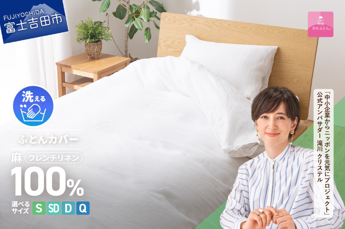 - 【甲州羽毛ふとん】フレンチリネンカバーケット(シングル~クイーン)ホワイト 掛けふとんカバー ガーゼケット 掛布団カバー シングル~クイーン フレンチリネン 山梨 富士吉田
