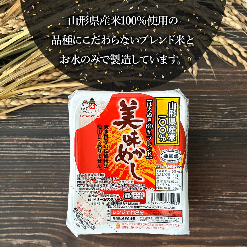 - 【ふるさと納税】美味かめし パックご飯 200g×24食入り 山形県産米100% ブレンド米 1箱 K-740 ドリームズファーム | 山形県 鶴岡市 ふるさと 納税 返礼品 食品 白米 パック ご飯 ごはん お手軽 レンジ 湯煎 一人暮らし 常温 備蓄 非常食 保存食 防災 ローリングストック