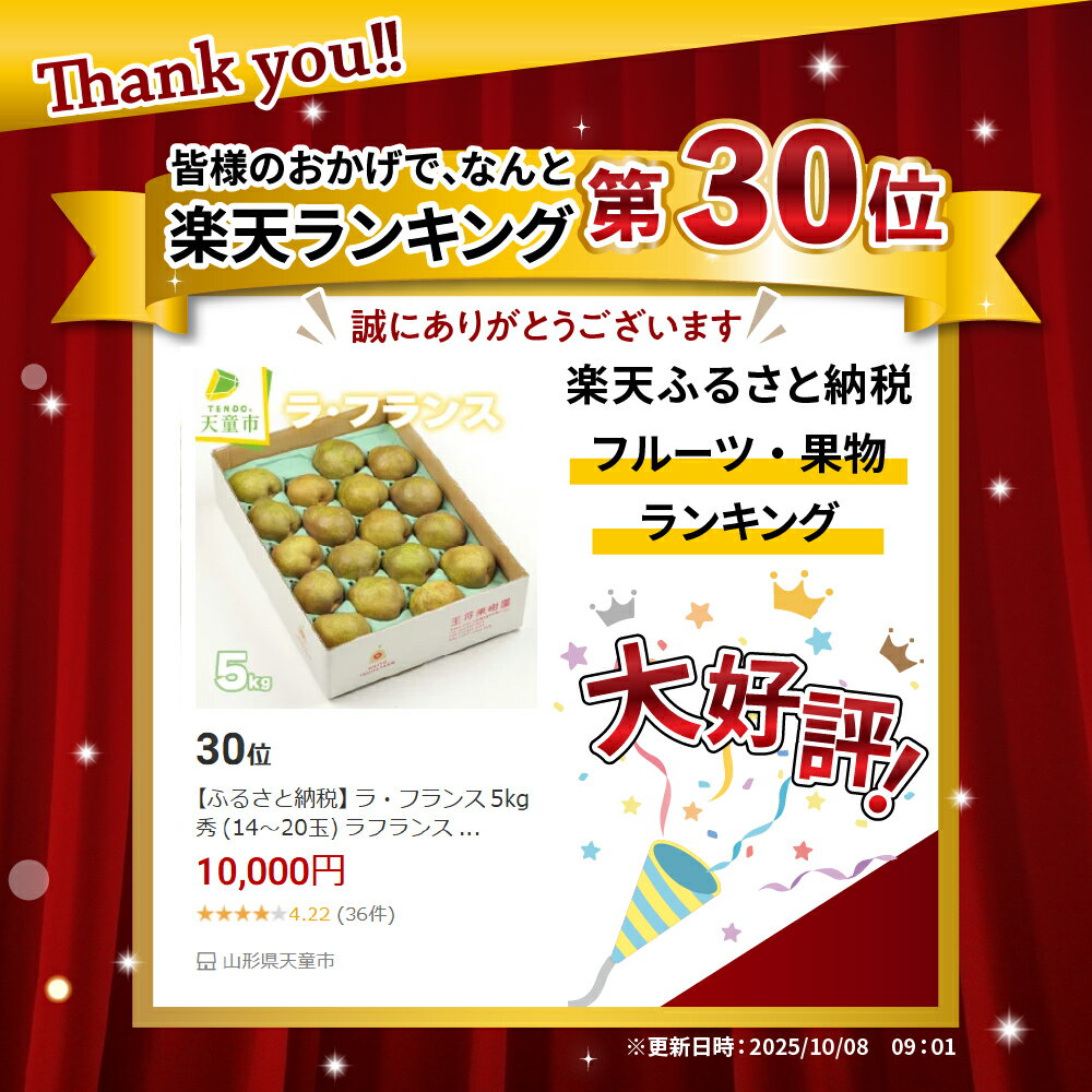 - 【ふるさと納税】 ラ・フランス 5kg 秀 (14~20玉) ラフランス 洋梨 西洋梨 果物 フルーツ 家庭用 のし 贈答 ギフト プレゼント おすそ分け お取り寄せ 旬 秋 冬 期間限定 送料無料 先行予約 【 山形県 天童市 】