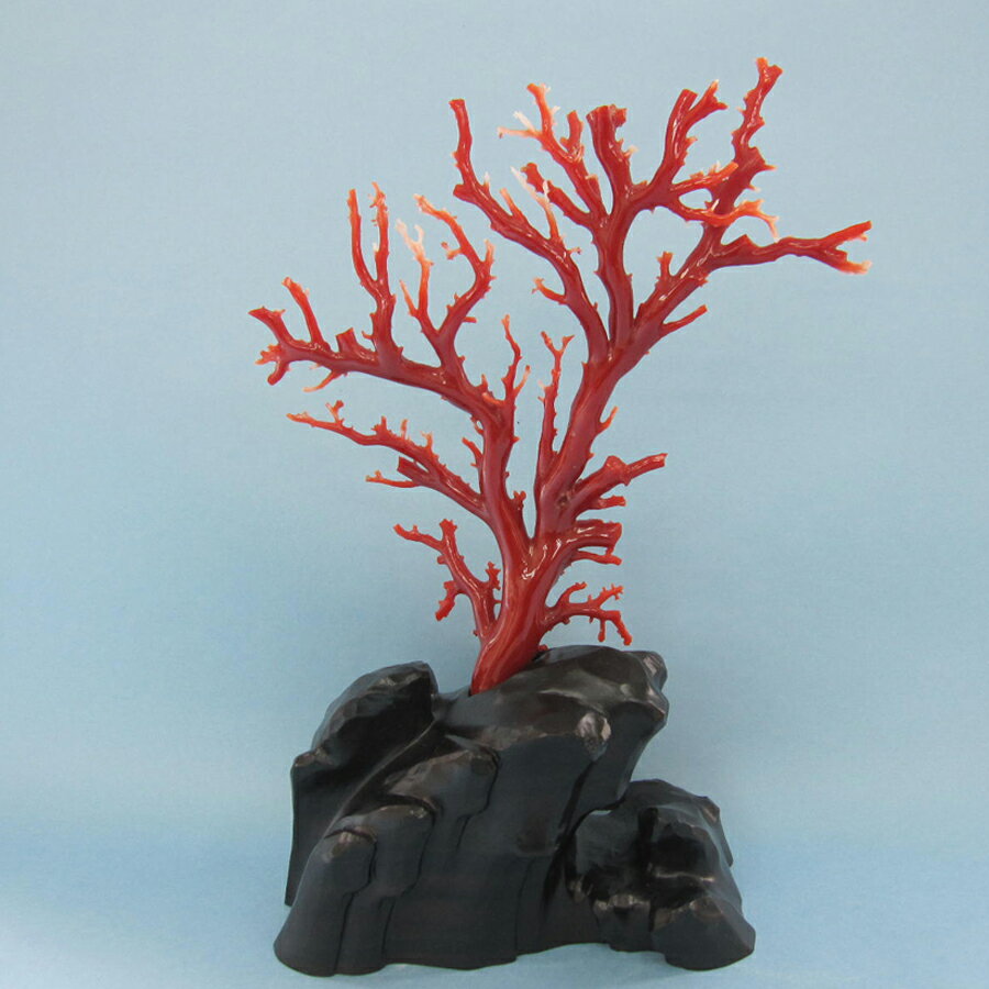 - 【ふるさと納税】高知県沖産血赤珊瑚の原木置物 黒檀台付