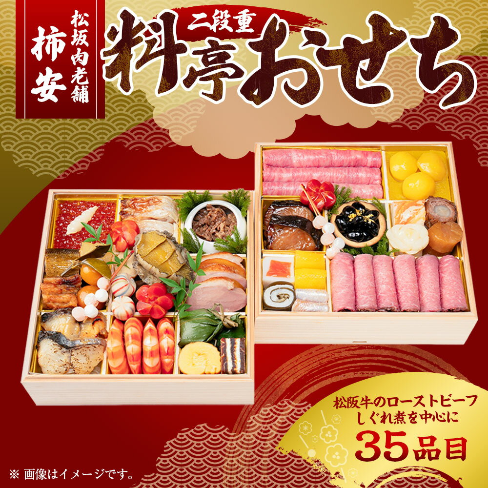 【ふるさと納税】松阪肉老舗 柿安 料亭おせち 二段重 セット いくら 松阪牛 ローストビーフ 牛肉 お肉 数の子 穴子山椒焼 伊達巻 栗きんとん 和牛八幡巻 黒豆甘露煮 ずわい蟹真丈 水産物 お節 御節 おせち料理 お正月 年末年始 三重県 桑名市 送料無料 【2025年12月31日着】