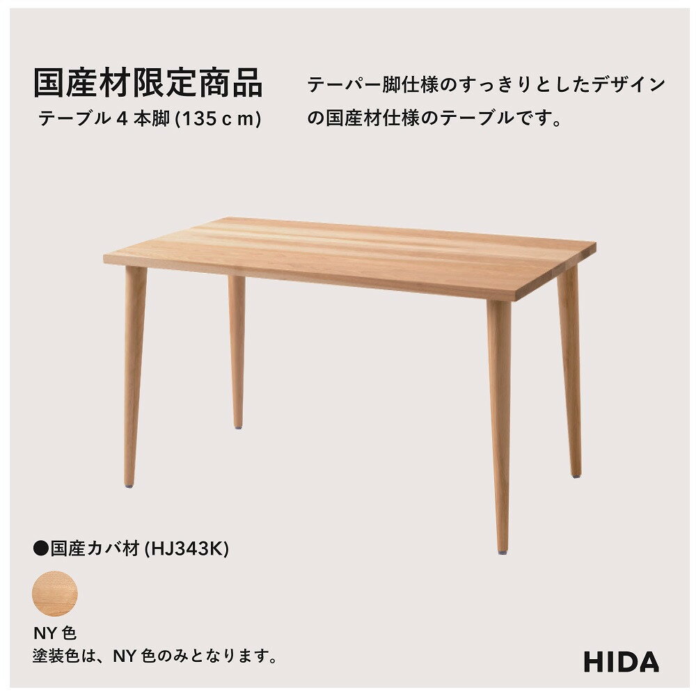 - 【ふるさと納税】【飛騨の家具】HIDA国産材限定商品 テーブル 国産カバ材仕様 テーパー脚 W135(HJ343K)|素材 自然 日本 和風 インテリア 和み 国産 机 テーブル 飛騨産業 CG476