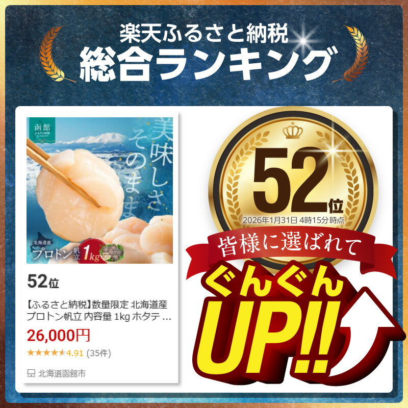 - 【ふるさと納税】数量限定 北海道産 プロトン帆立 内容量 1kg ホタテ 貝柱 お刺身 生食可 刺身 魚介 プロトン凍結 冷凍 旨み 食感 風味 甘味 料理 アレンジ カルパッチョ お茶漬け バター焼き フライ シチュー お取り寄せ グルメ 北海道 函館市 送料無料