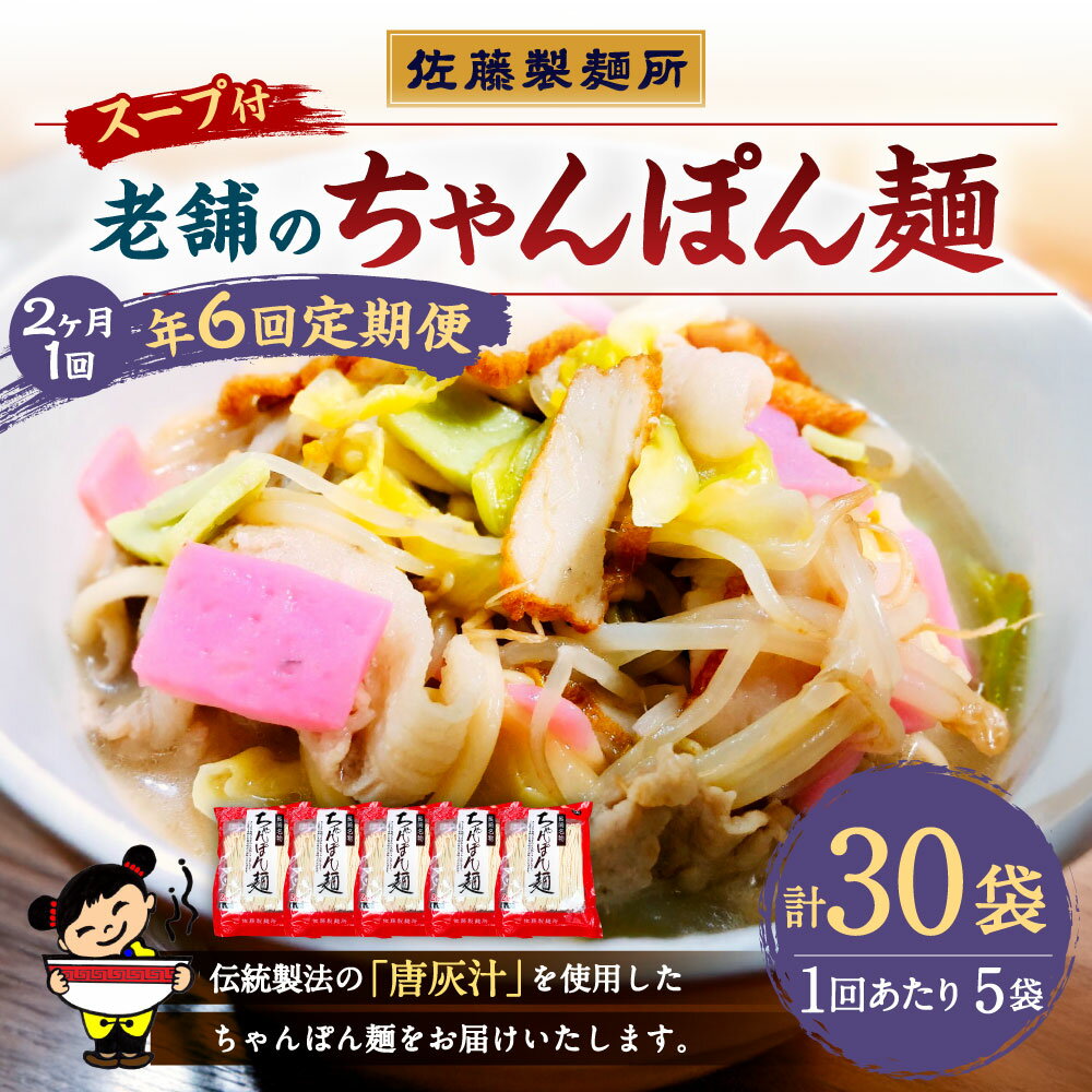- 【ふるさと納税】【年6回定期便】老舗の「長崎ちゃんぽん麺(2人前×5袋)」スープ付き! スープ×10袋 チャンポン 唐灰汁 とうあく 乾麺 麺類 簡単調理 グルメ 長崎県 長崎市 送料無料