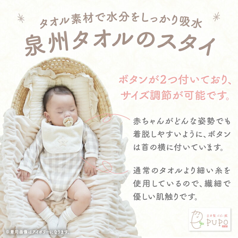 【ふるさと納税】《色が選べる》タオルのスタイ 泉州タオル 綿100% ベビー スタイ ふわふわ タオル素材 日本製 泉州タオル 綿 コットン 新生児スタイ PUPO ギフト よだれかけ 吸水性 出産祝い 敏感肌 低刺激 保育園 男の子 女の子 宮崎県 高千穂町