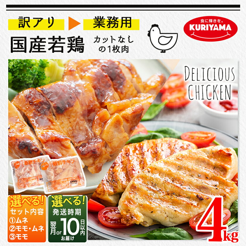 【ふるさと納税】【セット内容&発送時期が選べる!】訳アリ!【業務用】国産若鶏4kg - 訳あり 鶏肉 2kg×2袋 もも肉/むね肉 セットが選べる 食べ比べセット 入金後10日以内/翌月お届け お届け時期が選べる 送料無料 SKU-1404 【宮崎県都城市は2年連続ふるさと納税日本一!】