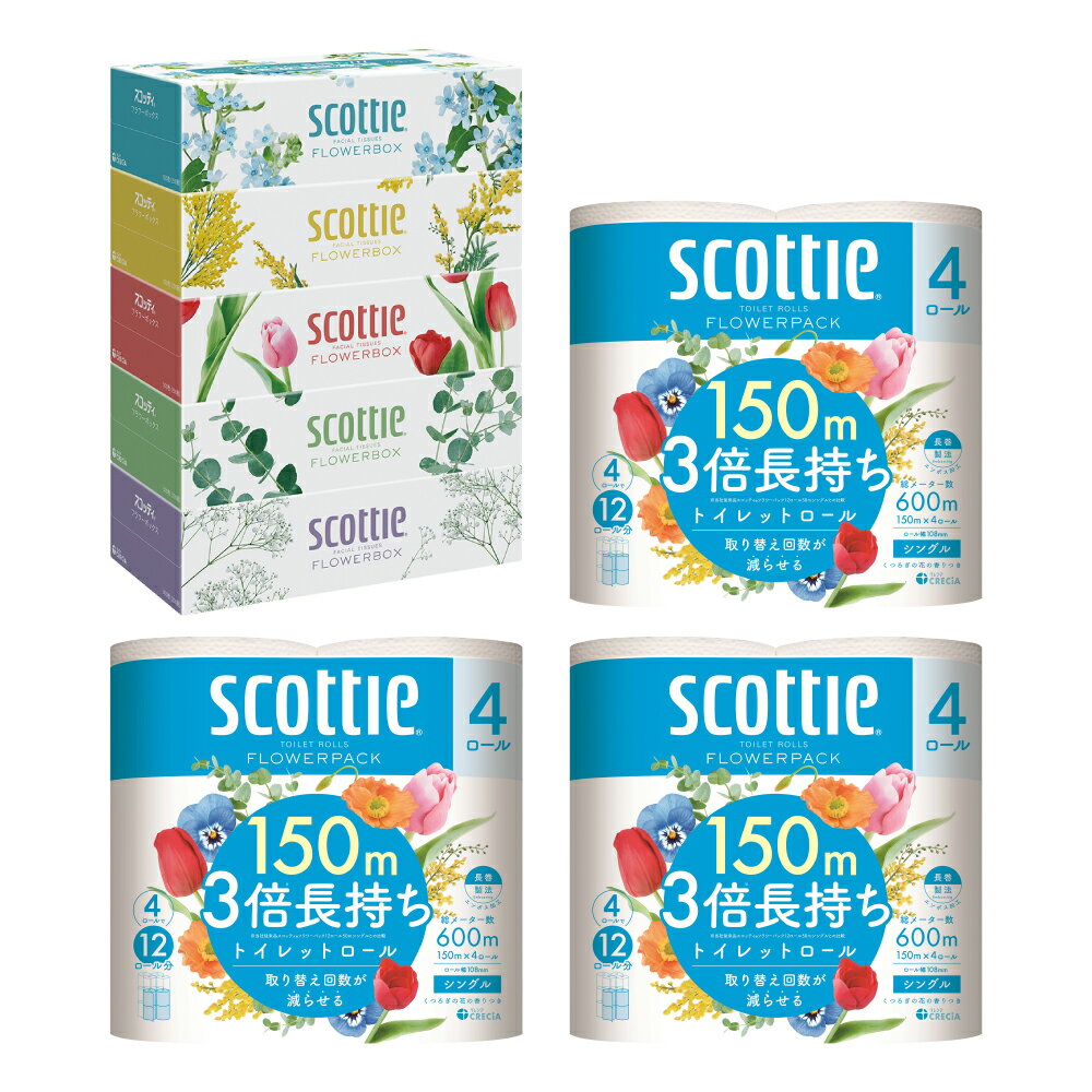 【スコッティ】ティシュー フラワーボックス 250組(5箱パック×2セット・3箱パック×2セット)+フラワーパック 3倍長持ち(4ロール(ダブル)パック×4セット)ティッシュ トイレットペーパー 日用品