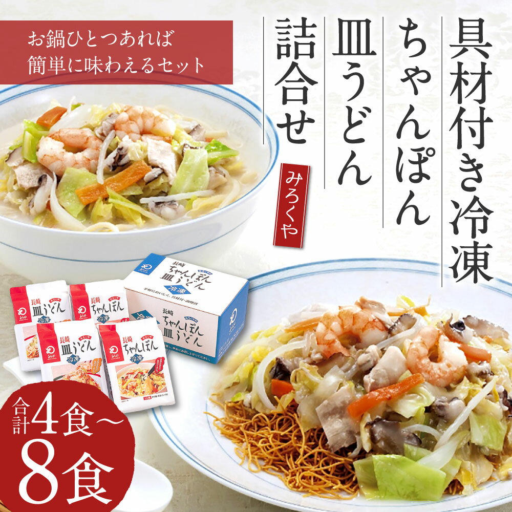 - 【ふるさと納税】みろくや 具材付き冷凍ちゃんぽん・皿うどん 4食/8食 選べる内容量 2種類 セット 10000円 ~ 20000円 1万円 ~ 2万円 チャンポン 長崎名物 乾麺 ギフト 贈り物 国産 九州産 送料無料